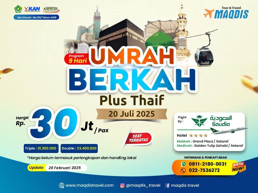 Umroh Berkah Plus Thaif 20 Juli 2025