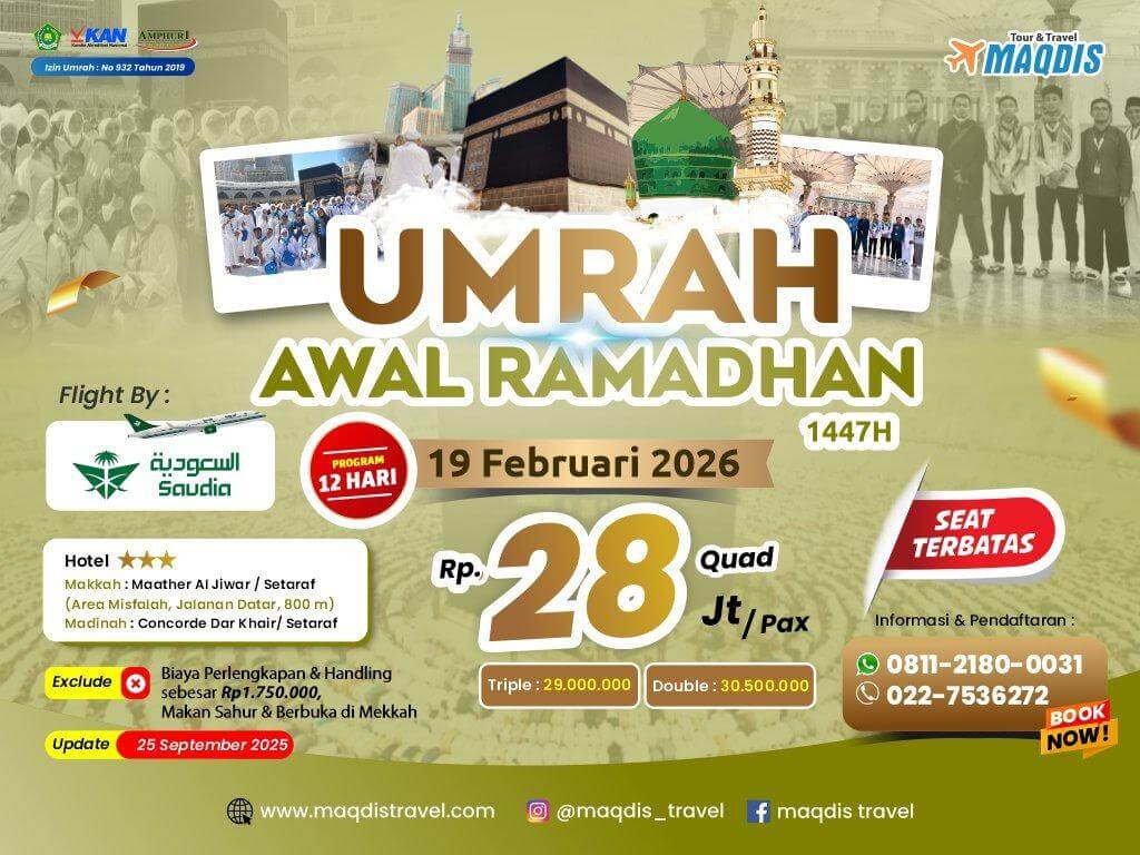 - Perlengkapan Umrah : Koper, Tas Paspor, Kain Seragam, Kain Ihram / Kerudung Malaya, Tas Sandal, Slayer, Buku Panduan Doa & Praktis Umrah, ID Card
