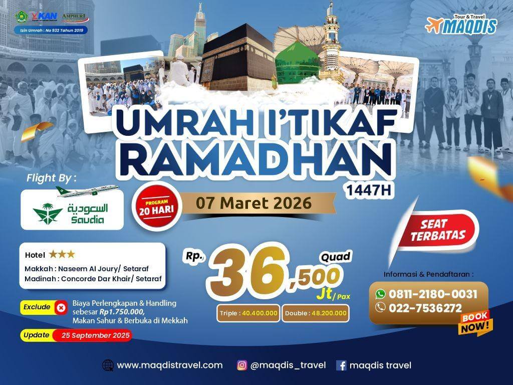 - Perlengkapan Umrah : Koper, Tas Paspor, Kain Seragam, Kain Ihram / Kerudung Malaya, Tas Sandal, Slayer, Buku Panduan Doa & Praktis Umrah, ID Card